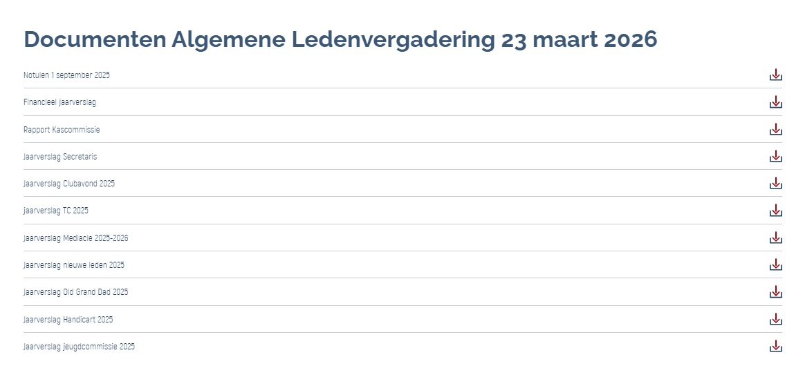 ALV pagina (ook mogelijk via Vereniging > Nieuws & Media > Algemene Ledenvergadering) en log in om de documenten te lezen.