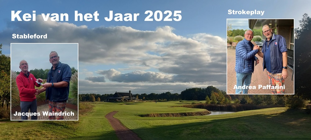 Afgelopen zaterdag zou de zesde en laatste Kei-wedstrijd gespeeld worden, waarna de Kei van het Jaar bekendgemaakt zou worden. Helaas waren de voorspellingen in verband met storm Amy zodanig dat de wedstrijd werd afgelast. Dat betekende dat de stand tot en met Kei 5 de eindranglijst bepaalde. En daarmee zijn dus de Keien van het Jaar 2025 bekend: in de Stableford categorie is dat Jacques Waindrich en bij Strokplay is Andrea Paffarini de winnaar. Gelukkig waren beiden bij de Herenmiddag aanwezig, zodat ze hun prijs in ontvangst konden nemen.