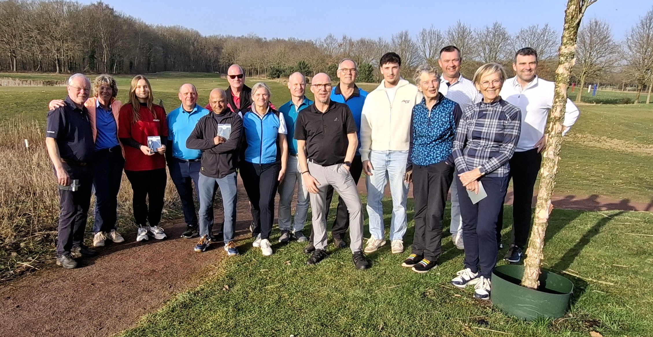 Wintercup 5 suggereert dat er vier eerdere edities zijn geweest. Deze winter zat het echter niet mee, twee wedstrijden konden vanwege de weer- of baanomstandigheden niet doorgaan. Hoe anders was het vandaag: schitterend weer, de winter in geen velden of wegen te bekennen. Hooguit een vrij hoge waterstand, zoals op de foto te zien is. De spelvorm was greensome tegen par, dat wil zeggen een plusje als de netto score beter is dan die van de hole (3, 4 of 5), een nul bij gelijke score en een minnetje bij een slechtere score. Het duo met de meeste plusjes wint. Hoe mooi is het om het Wintercupseizoen af te sluiten met een drankje en de prijsuitreiking op het terras en voor wie had besteld een lekkere kop soep. Als dit een voorbode is van de lente, zeggen wij: bring it on!